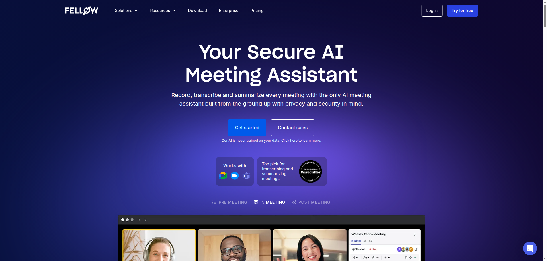 | Fellow | Meeting management | Yes | $9/mo | Meet, Zoom, Teams |