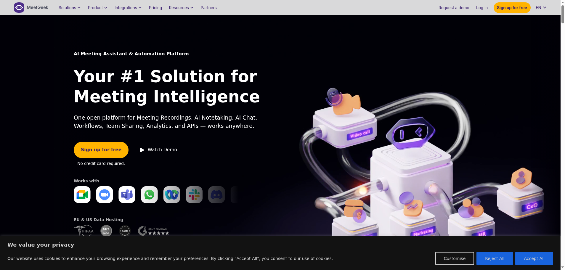 MeetGeek captures meeting insights, tracks team performance, and identifies patterns that drive results. The platform provides AI-generated notes while uncovering best practices across calls.