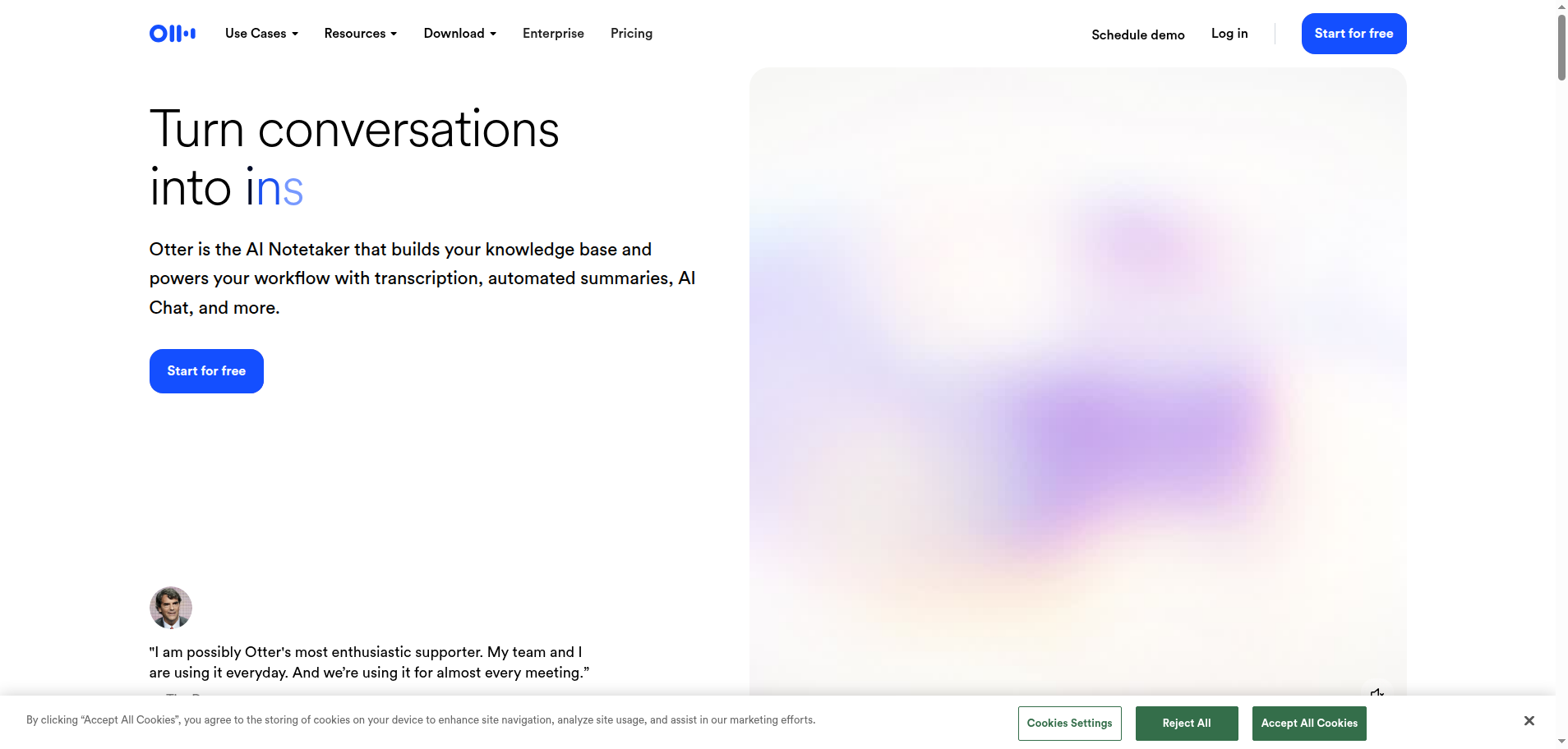 Pros: High transcription accuracy, strong AI summaries, works across platforms. Cons: Transcription focus over analytics; storage limits on lower tiers.