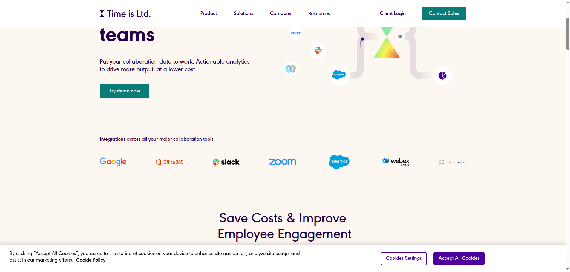 Time is Ltd delivers enterprise-grade workplace analytics focused on the financial impact of employee time. The platform pulls data from calendars, email, chat, and CRM systems to map collaboration networks and identify productivity costs.
