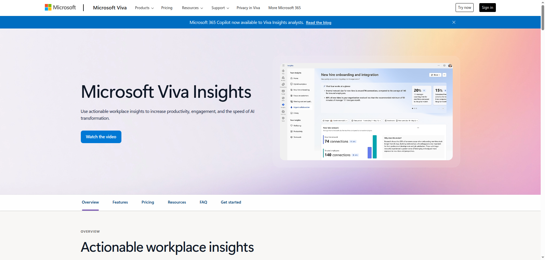 Microsoft Viva Insights provides native workplace analytics for organizations already using Microsoft 365. It delivers personal productivity insights to employees while giving leaders aggregated organizational data on work patterns.